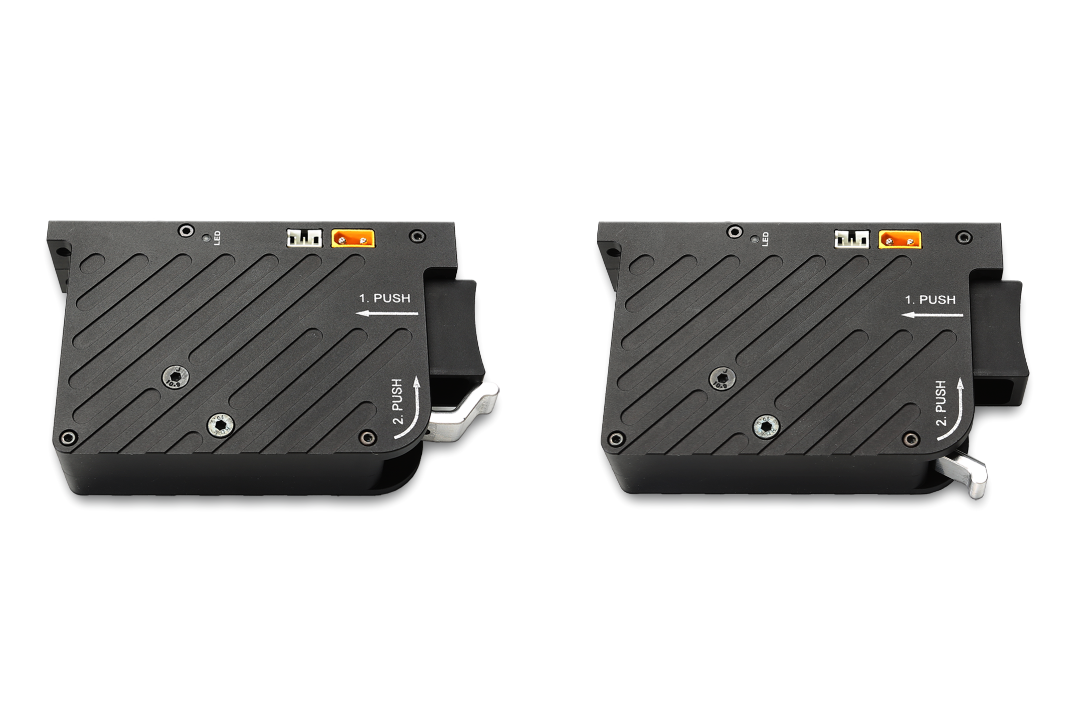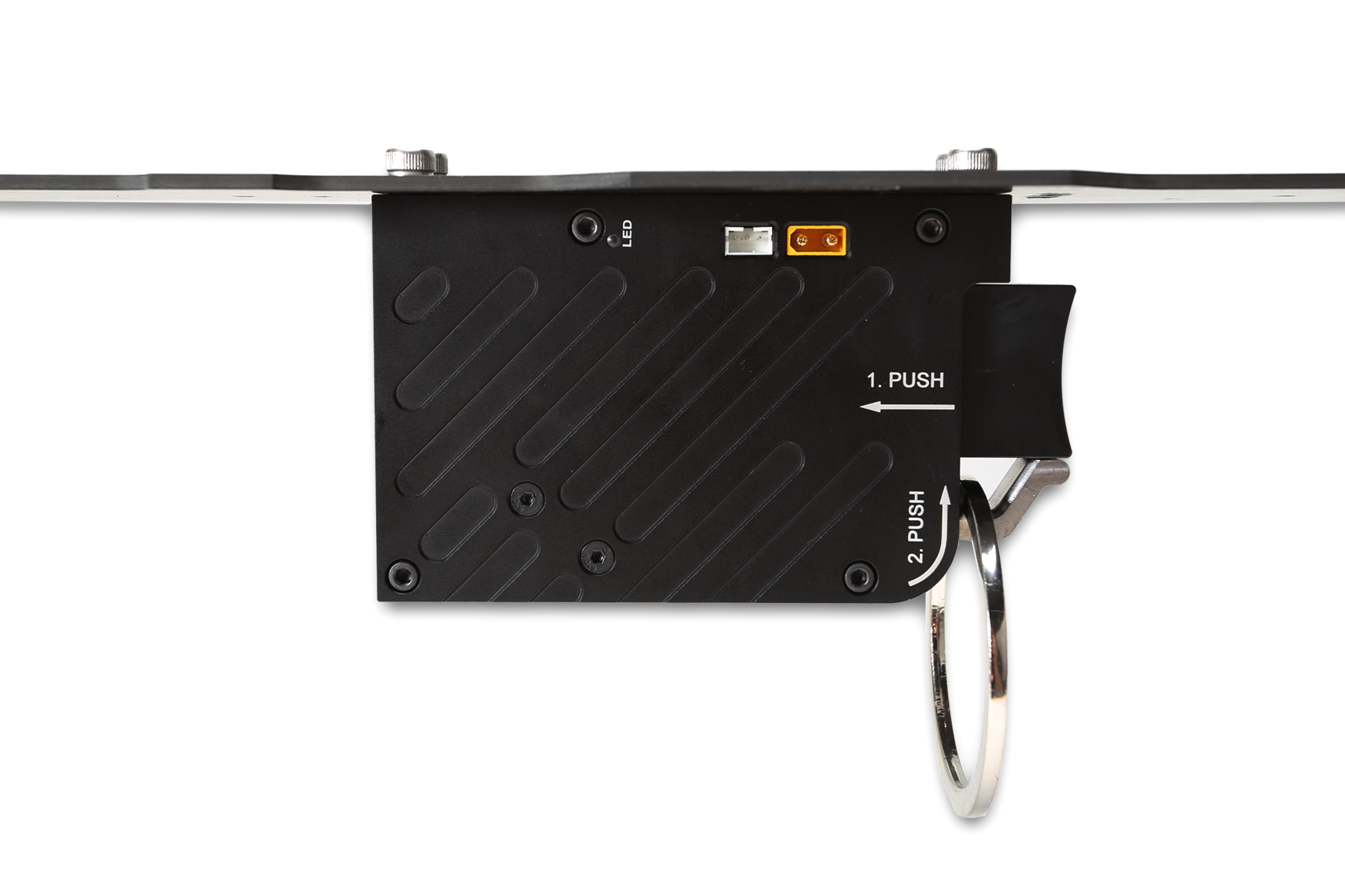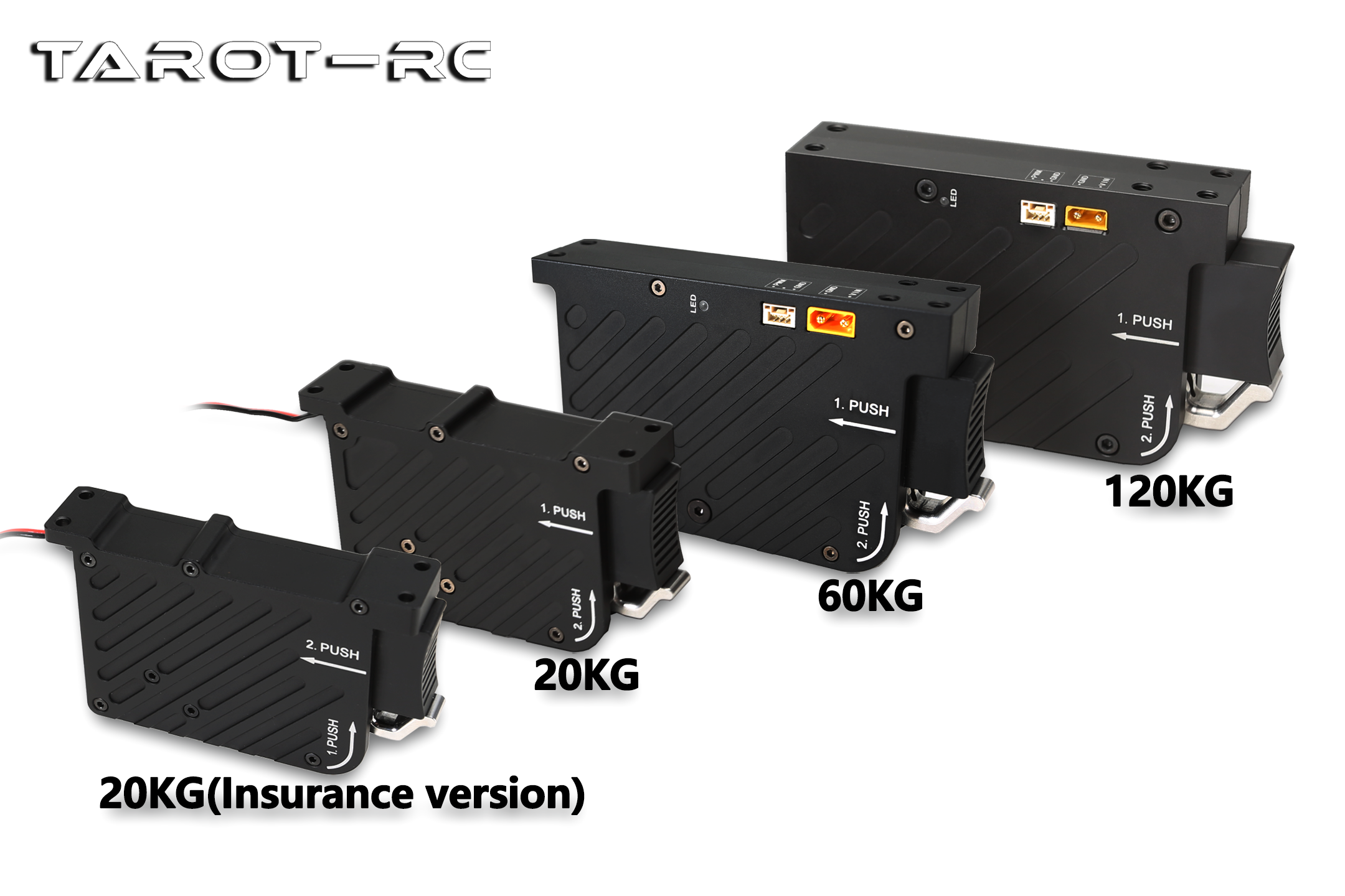 Tarot出厂的无人机电子抛投器,采用6063航空铝与304材质不锈钢通过CNC加工装配而成,结构上采用机械杠杆的设计原理,可减少驱动机构所需的输出功率,使得抛投装置体积小巧且杠杆件的铰接结构不会因为挂载物的重量大而卡死(极限实测挂载130KG载重物收放顺畅)。您可以根据使用场景环境挂载多个本系列电子抛投器,且可独立控制各抛投装置投放的顺序。